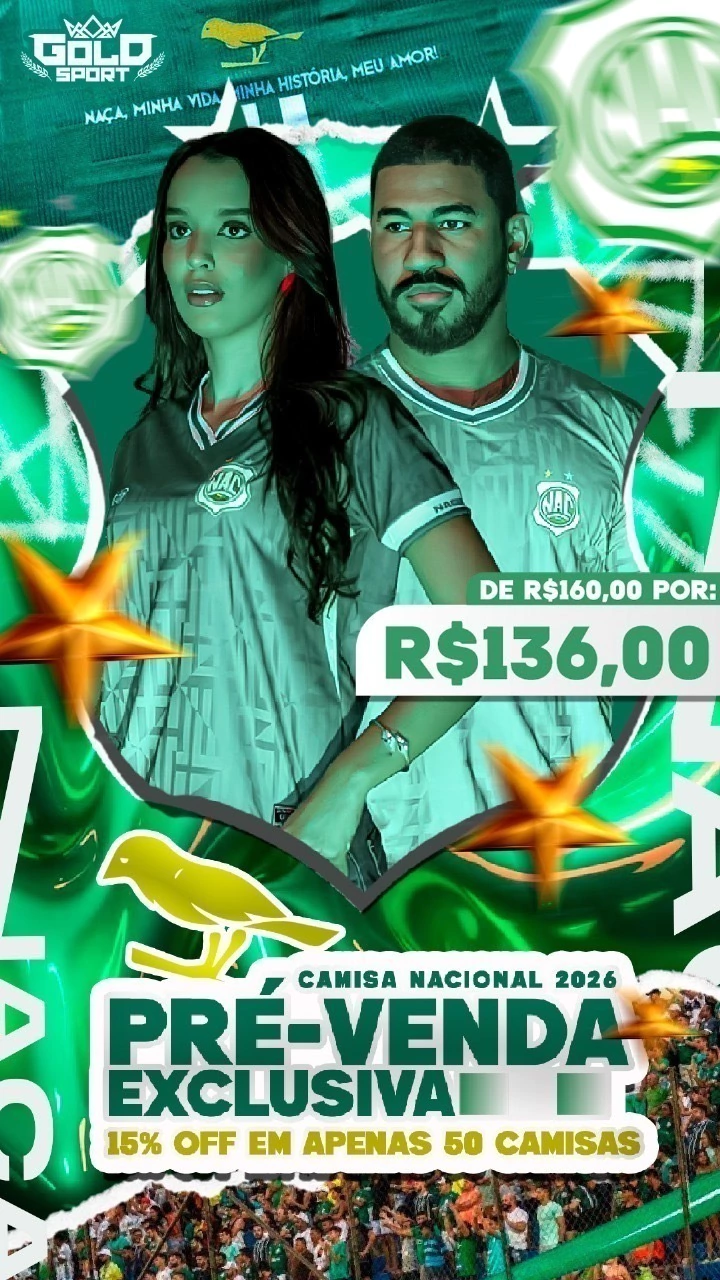 Essa é a pré-venda exclusiva da camisa oficial Nacional 25/26, com 15% de desconto de lançamento.