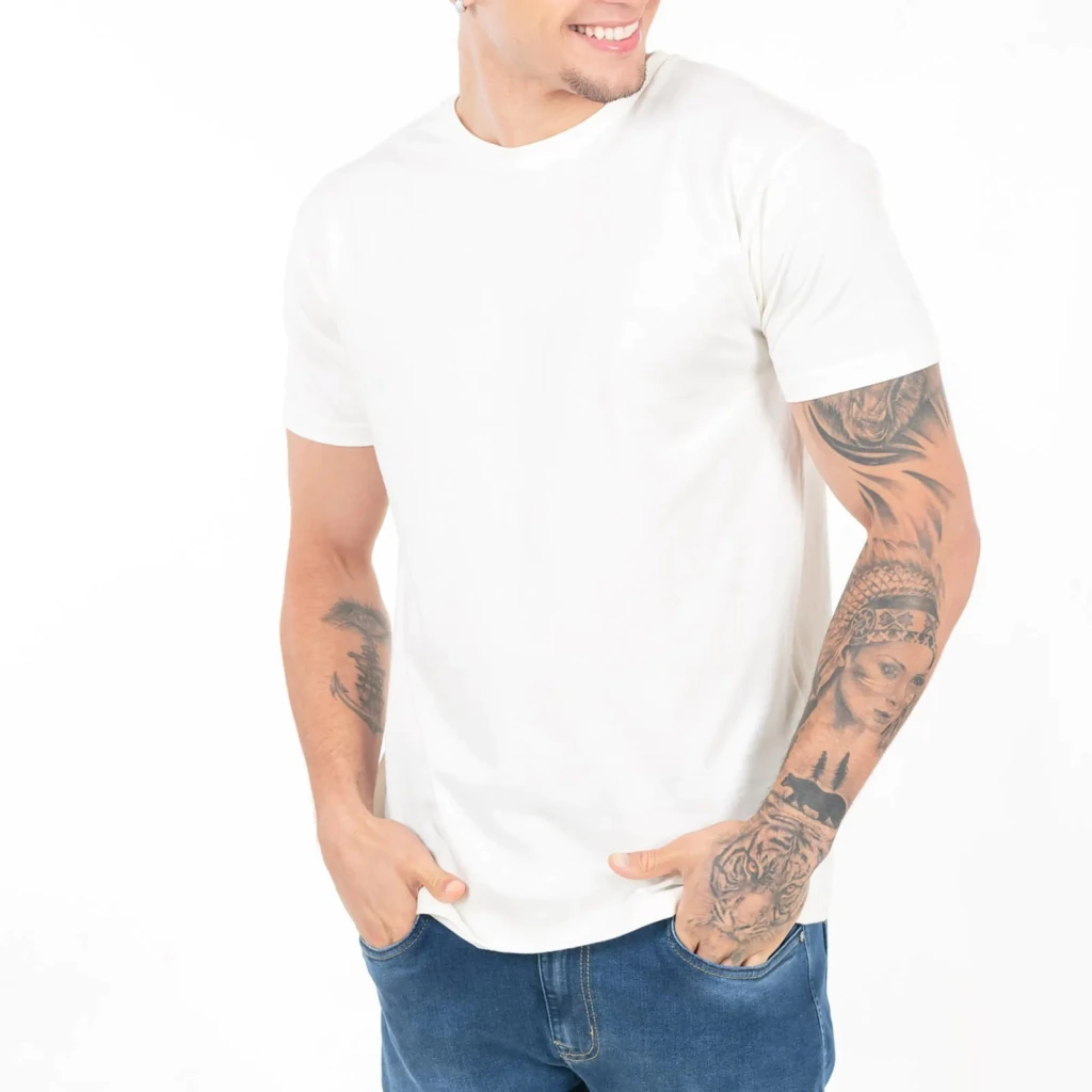 Camisa confeccionada em algodão penteado de alta qualidade, com gramatura de 165g/m², unindo leveza e resistência para maior durabilidade. O tingimento reativo garante cores vivas que não desbotam, mesmo após várias lavagens. Possui costura reforçada na gola e nos ombros, oferecendo mais resistência no uso diário. Além disso, seguimos um compromisso ecológico, utilizando processos sustentáveis, incluindo a devolução da água tratada à natureza.